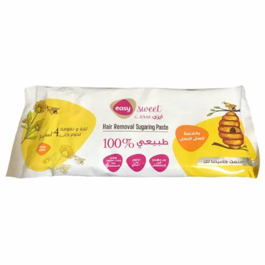 تتكون منتجات إزالة الشعر بالشمع السكري الفعال من ايزي سويت فقط من مكونات طبيعية مثل السكر الطبيعي العضوي والعضوي من عصير الليمون والماء النقي