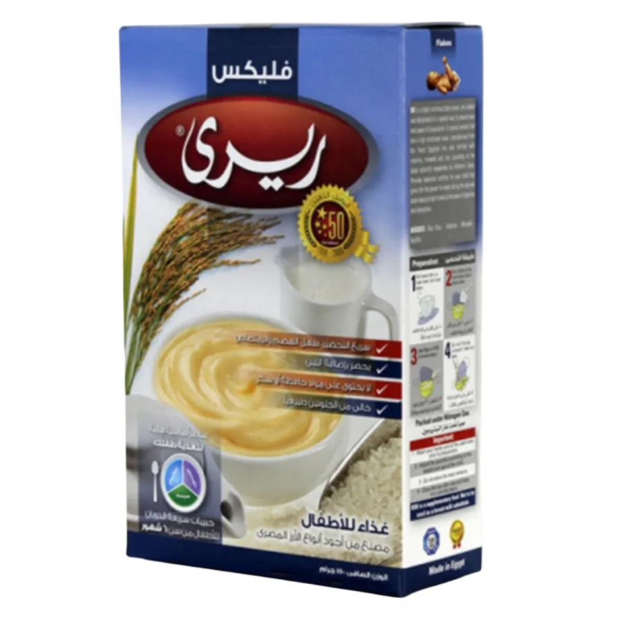 منتج طبيعى مصنع من الأرز المصرى الطبيعى وخالى من مادة الجلوتين وسهل الهضم، مزود ب 7 فيتامينات معدنيه من أجل نمو صحى وطبيعى للأطفال.