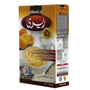 ريرى برتقال مصنوع من أجود أنواع الأرز ولبن جاف خالى الدسم ـ مركز البرتقال ، مزود ب 7 فيتامينات ، ويحتوى أيضا على الكالسيوم والحديد.