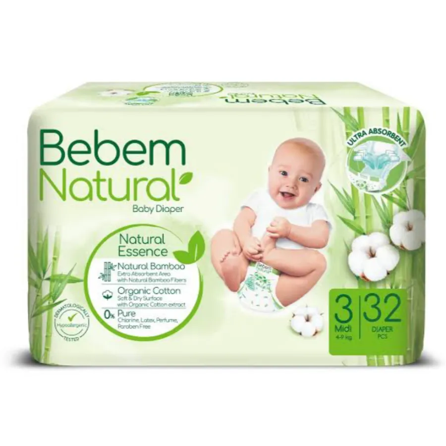 للـعناية ببشرة طفلك، لا يحتوي Bebem Natural على الكلور والبارابين واللاتكـس والعطور.