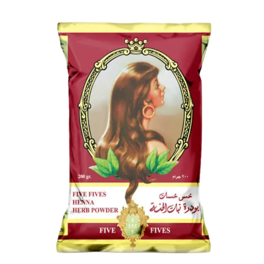 تغلف حنة خمس خمسات الطبيعية كل خصلة شعر على حدا لتلوين الشعر وحمايته، كما أنها تمنحك شعر ناعم وكثيف.