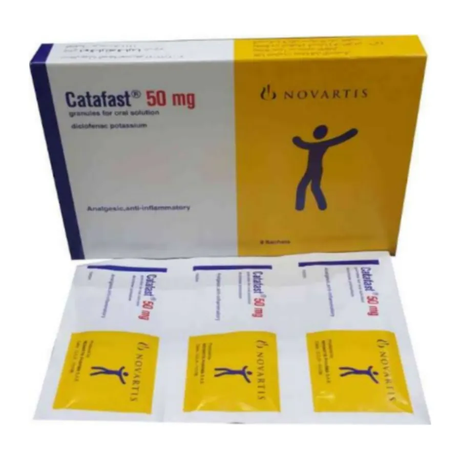 ديكلوفيناك البوتاسيوم بتركيز 50 مجم : تعمل على تسكين الألم وعلاج الحمى وتخفف من الالتهابات عن طريق منع إنتاج المادة المسئولة عن الإحساس بالألم والالتهابات وإرتفاع درجة حرارة الجسم.